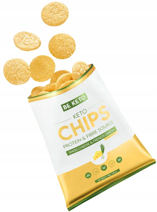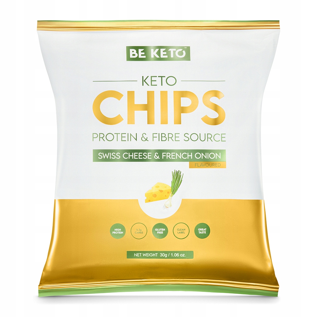 Keto Chipsy – Ser Szwajcarski & Francuska Cebulka 30g ✔ Wysoka zawartość białka i błonnika ✔ Tylko 4.3g węglowodanów w paczce ✔ Bezglutenowe, obłędnie smaczne i chrupiące ✔ Jedyne 107 kalorii w opakowaniu