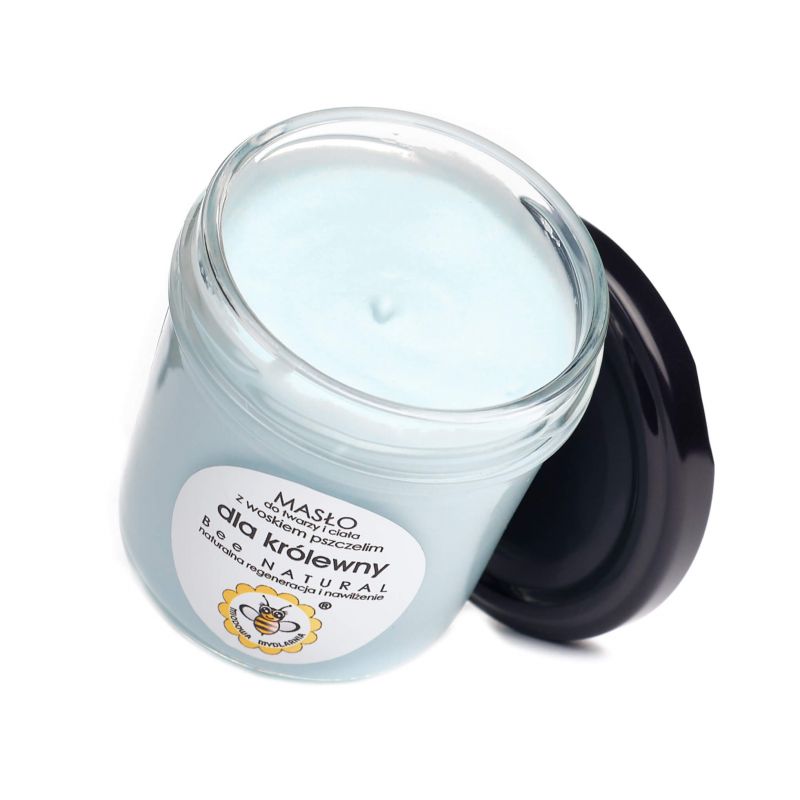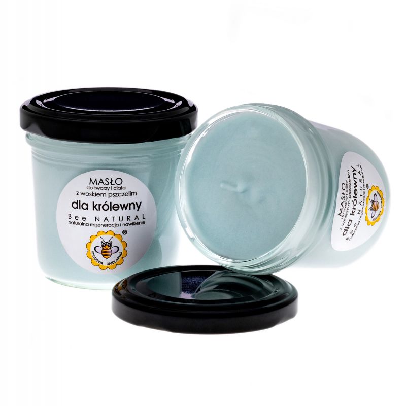 masło do twarzy i ciała DLA KRÓLEWNY Masa netto: 65g Data minimalnej trwałości: 1 rok Odżywcze naturalne masło do twarzy i ciała z woskiem pszczelim o lekkiej, puszystej konsystencji musu i kobiecym, zmysłowym aromacie. Błyskawicznie zregeneruje skórę, odżywi, wyrówna poziom nawilżenia, ukoi wszelkie podrażnienia, zdecydowanie poprawi kondycję skóry. Masło wspaniale sprawdzi się w codziennej pielęgnacji każdego rodzaju skóry, szczególnie suchej, wiotkiej, starzejącej się, wymagającej odnowy. Polecane jest zawsze wtedy, gdy skóra potrzebuje pomocy i ukojenia. Olejek zapachowy, który tak cudownie aromatyzuje masło Dla królewny – to wysokiej klasy zapach spełniający dyrektywy Unii Europejskiej oraz normy International Fragrances Association (IFRA). Przechowuj masło w temperaturze poniżej 25°C, chroń przed bezpośrednim nasłonecznieniem.