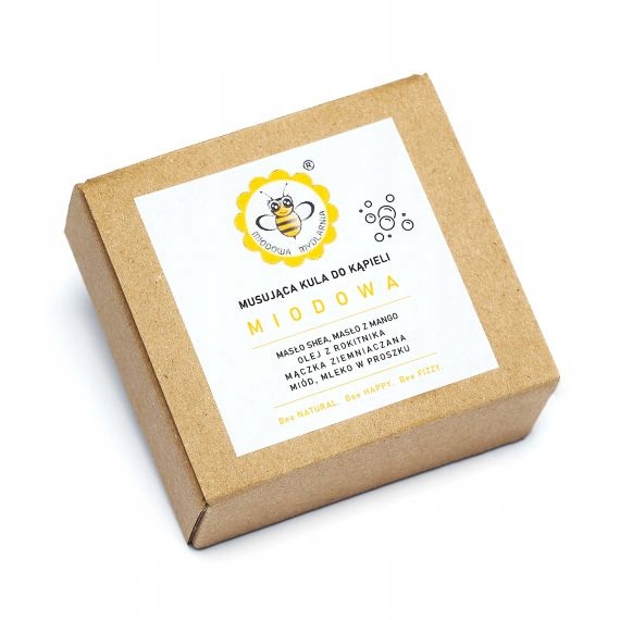 Musująca Kula do kąpieli MIODOWA MIODOWA MYDLARNIA Musująca, aromatyczna kula do kąpieli, w formie heksagonu, nawilżająca, z odżywczymi i kojącymi: miodem, mlekiem, mączką ziemniaczaną, masłami shea i z mango oraz olejem z rokitnika. Pachnie, przyjemnie słodko, miodowo, przywodząc na myśl łąkę wypełnioną słodkim aromatem kwiatów w letni, wakacyjny dzień. Prawdziwy umilacz kąpieli – kąpiel z tą kulą to wspaniały relaks i odprężenie, ale jednocześnie nawilżająco – natłuszczająca pielęgnacja ciała. INCI: Sodium Bicarbonate, Citric Acid, Solanum Tuberosum Starch,  Milk Extract, Butyrospermum Parkii Fruit Butter, Parfum,  Honey, Mangifera Indica Seed Butter, Hippophae Rhamnoides Fruit Oil, Benzyl Alcohol*, *Citronellol* *składnik olejku zapachowego Pojemność: 80 g (+/-5g)