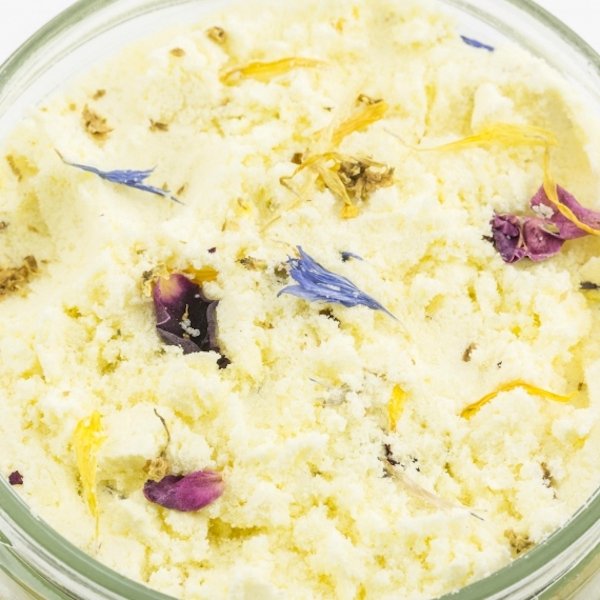 Musujący puder do kąpieli z dodatkiem miodu i pyłku pszczelego. Unikatowa formuła łagodzi objawy napięcia nerwowo-mięśniowego oraz pozwala się wyciszyć. Cenne składniki aktywne dbają o zachowanie dobrej kondycji skóry ciała, a olejki zapachowe wypełniają pomieszczenie kojącym, ciepłym aromatem miodu. Mleko zapewnia komórkom naskórka cennych minerałów, które pozwalają dogłębnie odżywić skórę. Widocznie wygładza powierzchnię ciała i pozostawia ją aksamitnie miękką w dotyku. Naturalny kwasek cytrynowy pomaga wyrównać koloryt cery i pozostawia ją pełną wewnętrznego, zdrowego blasku. Razem z sodą oczyszczoną odpowiada także za musujący efekt pudru. Dodanie do produktu oleju marchwiowego zapewnia działanie antyoksydacyjne. Normalizuje również wydzielanie sebum, wspomaga system immunologiczny skóry i zmniejsza swędzenie. Pozwól sobie na chwilę relaksu i zanurz się w relaksującej, odżywczej kąpieli. Pojemność: 180 g Sposób użycia: Do wanny napełnionej ciepłą wodą wsyp 3-5 łyżek pudru. Zachowaj ostrożność przy wychodzeniu z wanny – jej powierzchnia może być śliska. Uważaj, aby woda nie dostała się do słoika z pudrem. Skład/INCI: soda oczyszczona, mleko w proszku, miód w proszku, pyłek pszczeli, kwasek cytrynowy, mączka ziemniaczana, olej marchwiowy, olejek zapachowy, płatki bławatka i nagietka, kwiat bzu czarnego, płatki róży