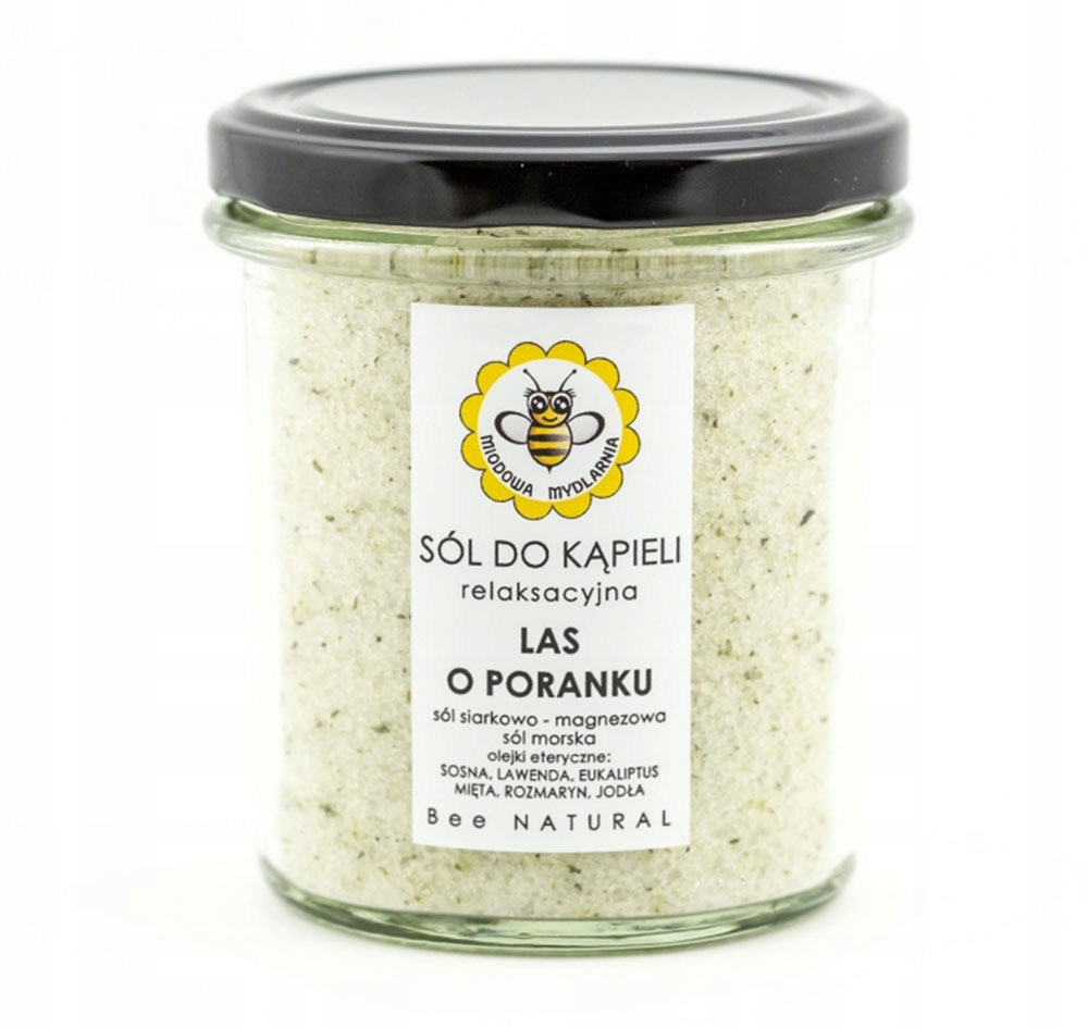 Sól do kąpieli Las o Poranku Z solą Epsom, tapioką, rozmarynem, olejkiem eterycznym z lawendy Producent: Miodowa Mydlarnia Pojemność: 350 g Odświeżająca, relaksacyjna sól do kąpieli bogata w minerały i olejki eteryczne: sosna, lawenda, eukaliptus, mięta, rozmaryn i jodła. Niezwykle odświeżająca, relaksacyjna sól do kąpieli LAS O PORANKU to mieszanka soli morskiej oraz soli angielskiej Epsom, rozmarynu oraz 6 olejków eterycznych. Sól jest bogatym źródłem minerałów (szczególnie sodu, magnezu, siarki, potasu, wapnia) koniecznych do prawidłowego funkcjonowania organizmu. Polecana przy bólach mięśni, stawów, głowy i ogólnym zmęczeniu, ale szczególnie w stanach przed – i przeziębieniowych – unikalna kompozycja olejków eterycznych skutecznie pomaga udrożnić nos, ułatwia oddychanie, oczyszcza zatoki. Regularne stosowanie kąpieli solankowej zapewnia przyswojenie przez organizm makro- i mikroelementów, przyspiesza proces regeneracji komórek, pomaga w różnych problemach skórnych, pobudza krążenie, ujędrnia, zmiękcza i wygładza skórę. Niweluje napięcie i uspokaja, przywraca równowagę ducha.