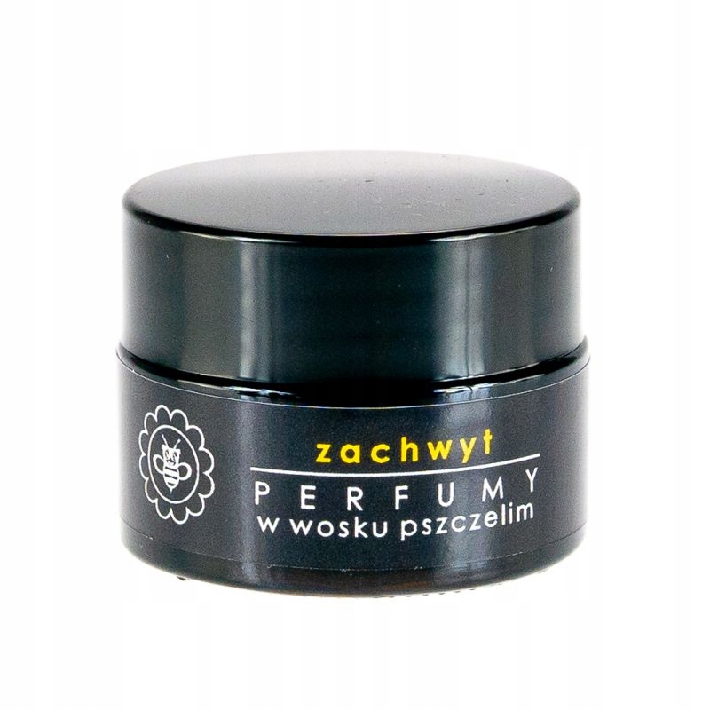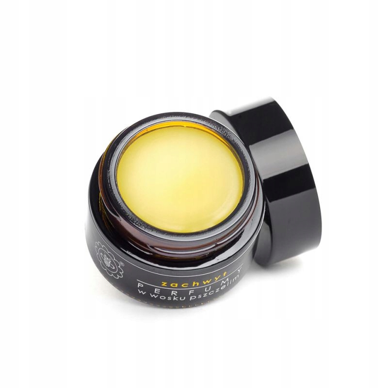Miodowa Mydlarnia Perfumy w wosku pszczelim Zachwyt Masa netto: 15g Zniewalająco, otulająco, zmysłowo, ciepło – te cztery słowa w pełni oddają odczucia jakich doznaje się odkręcając słoiczek perfum. Zapach łączy w sobie nuty orientalne i drzewne ze słodkimi akordami gourmand. Pod przyjemną słodyczą kryje się cielesne ciepło, które ogrzewa i zachęca do przytulenia. Perfumy te stworzyliśmy na wyraźne życzenie Klientek, zachwyconych naszym olejkiem do ciała ZACHWYT, oba kosmetyki mają tę samą nutę zapachową. Perfumy w wosku pszczelim i oleju jojoba, zwane też twardymi perfumami, to oryginalna, bardzo praktyczna i efektywna forma perfum o dużej koncentracji i trwałości zapachu. Wosk pszczeli i olej jojoba to doskonałe nośniki zamkniętych w nich nut zapachowych – idealnie chwytają, zakorzeniają i utrzymują aromat, łatwo się wchłaniają w skórę, nie pozostawiając tłustego śladu. Stopniowo uwalniają zapach, a jego odczuwanie jest bardziej intymne, osobiste, związane z bliskością, jest to doznanie nie tak oczywiste i gwałtowne jak po zastosowaniu tradycyjnych, lotnych perfum opartych głównie na alkoholu. Konsystencja perfum jest odpowiednio średnio twarda: perfumy zachowują swą formę w normalnych warunkach użytkowania i przechowywania, łatwo jest nabrać odrobinę opuszkiem palca, rozpuszczają się delikatnie dopiero pod wpływem ciepła skóry, wsmarowane szybko się wchłaniają. Perfumy zamknięte są w szklanym, ciemnym słoiczku o grubych ściankach, który idealnie chroni zawartość przed światłem słonecznym i gwarantuje świeżość i trwałość zapachu.