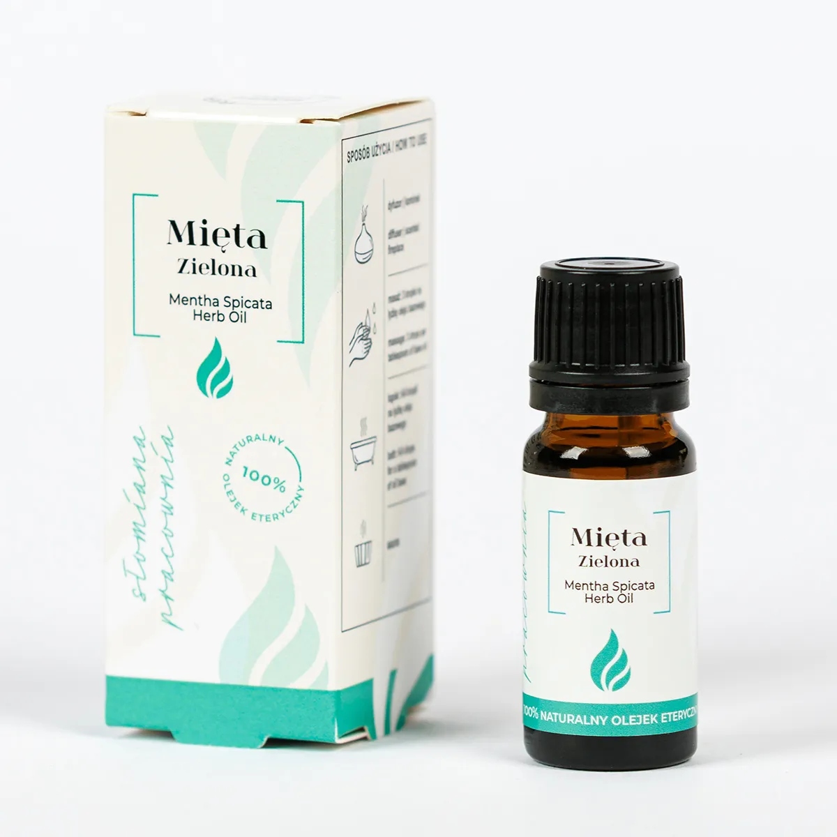 Olejek z Mięty Zielonej 100% Naturalny ✨ Odkryj orzeźwiającą moc natury! Olejek z mięty zielonej o słodkawym, świeżym zapachu to naturalny sposób na wsparcie relaksu, regenerację i codzienną pielęgnację. Jego łagodniejsze działanie w porównaniu z olejkiem z mięty pieprzowej czyni go idealnym wyborem dla dzieci oraz osób o wrażliwej skórze.