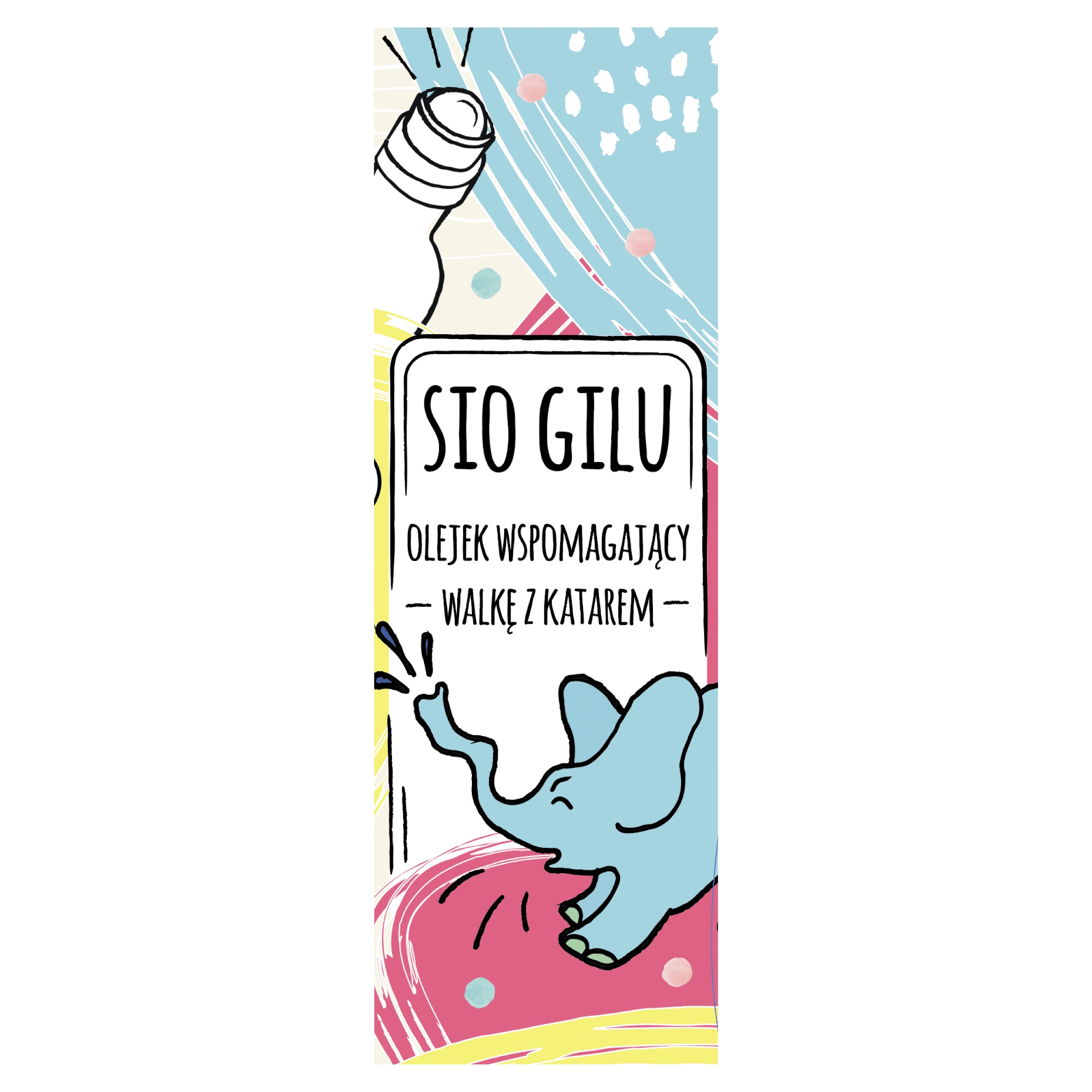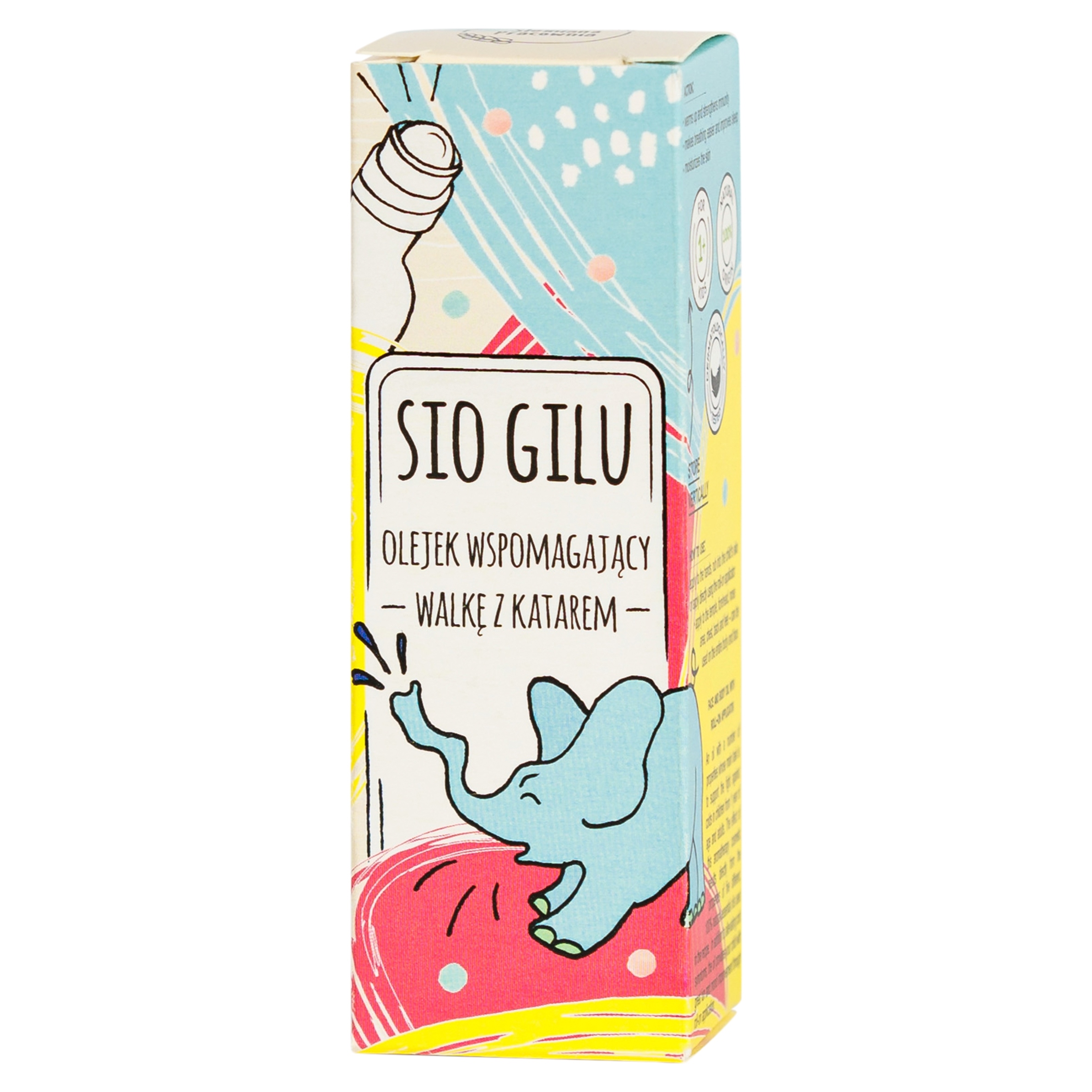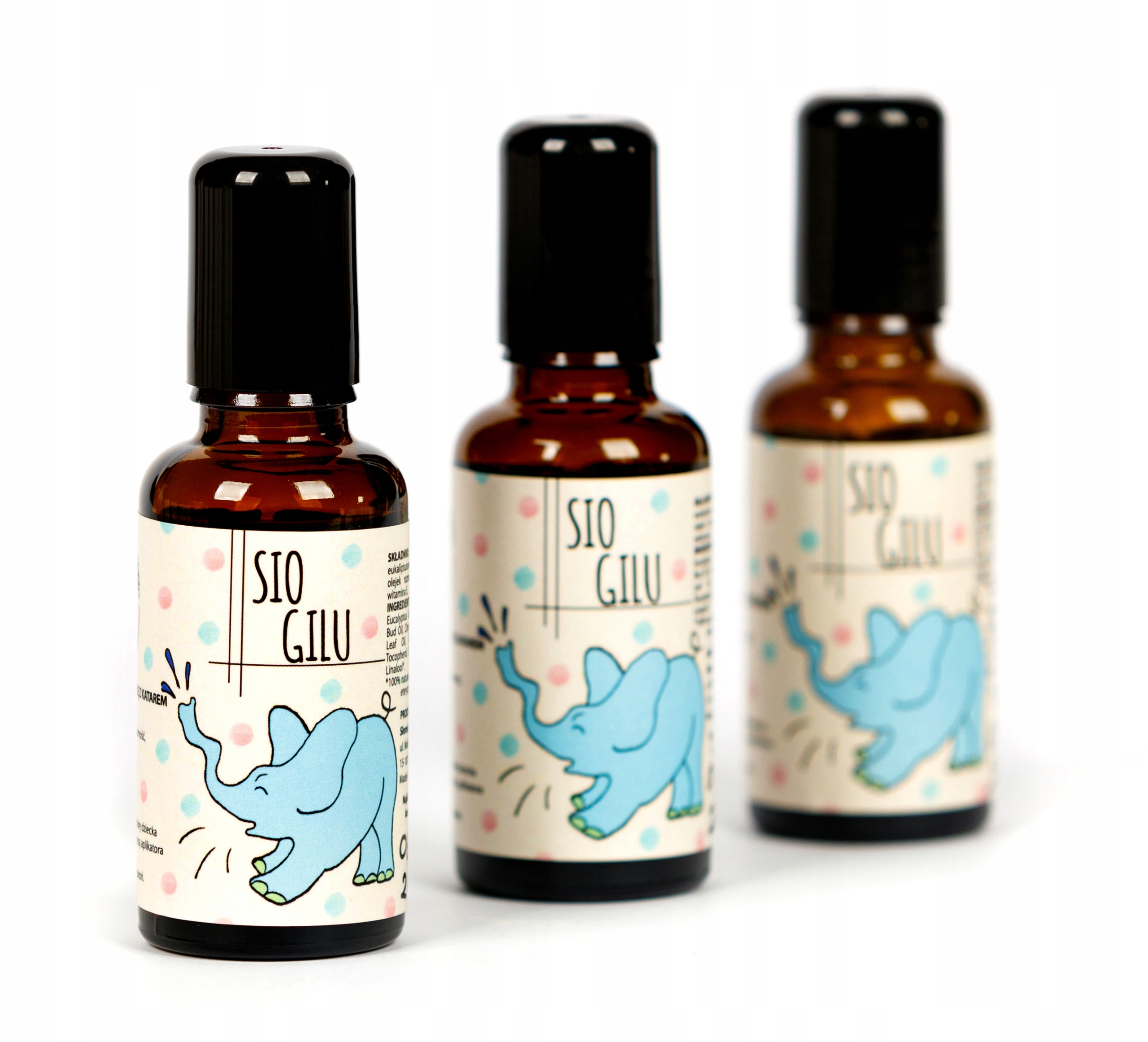 Sio Gilu ma trzy działania : Pierwsze to wspomaga walkę z katarem. Opracowany jest na bazie olejku złodziei. Jego historia sięga czasów średniowiecza. Nagłą popularność zyskał w XV wieku, gdy we Francji zapanowała epidemia dżumy. Złodzieje rabowali domy osób dotkniętych chorobą, nie zarażając się od nich. Tajemnica tkwiła w wyjątkowej mieszance kilku olejków eterycznych, którymi się smarowali. Nasz olejek łagodzi objawy związane z przeziębieniem, zapaleniem zatok oraz ułatwia oddychanie. Rozgrzewa ciałko dzieciaczków, zapewniając im lepszy sen. Po drugie nawilżające. Po trzecie zabawa. Zwłaszcza wieczorem gdy humor nie dopisuje a zmęczenie daje się we znaki, forma aplikacji olejku roll on potrafi rozweselić nie jednego dzieciaczka. W trakcie nakładania na stópki Sio Gilu, kuleczka aplikatora wykonuje masaż stópek. Wielokrotnie gilgotki, przeradzają się w mega zabawę pełną śmiechów. Dzięki swej bezpiecznej formie olejek może być stosowany u dzieci od 1 roku życia. Produkt przebadany laboratoryjnie. Jest hipoalergiczny i ma potwierdzone działanie. Do produkcji używamy tylko i wyłącznie wysokiej jakości, wyselekcjonowane  w 100% naturalne olejki eteryczne.