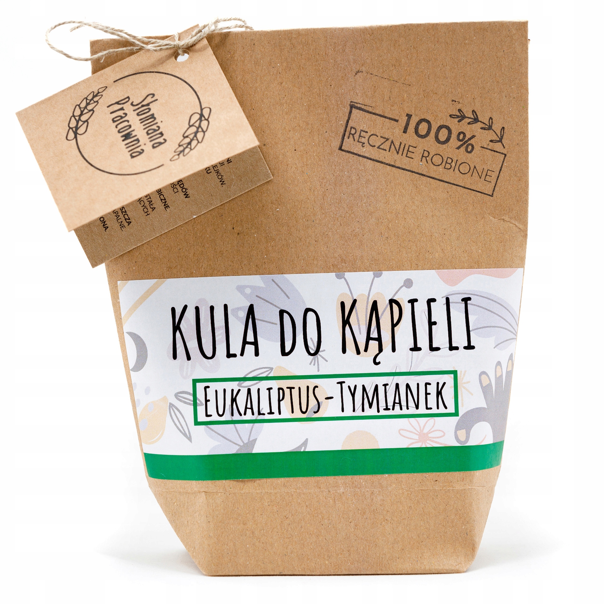 Kula do kąpieli Eukaliptus Tumianek Prezentujemy ręcznie robione, naturalne kule kąpielowe marki Słomiana Pracownia. Dzięki jednej niedużej kuli w każdej chwili możesz zafundować sobie domowe SPA. Do produkcji naszych kosmetyków używamy tylko naturalnych, starannie wyselekcjonowanych surowców… to dzięki nim, twoja skóra będzie doskonale nawilżona, a zapach unoszący się w kąpieli pomoże zostawić codzienność za drzwiami łazienki. Ta kąpiel z pewnością przegoni przeziębienie dzięki kombinacji trzech cudownie inhalujących olejków. Oprócz eukaliptusa i tymianku poczujesz tutaj zapach jodły syberyjskiej. Olejek pozyskiwany z młodych pędów tej rośliny ma silne właściwości przeciwbakteryjne, przeciwwirusowe i przeciwgrzybiczne. Waga: 70g – 1 sztuka Skład: Soda oczyszczona, Kwasek cytrynowy, Sól kamienna, Olej kokosowy, Masło shea, Oliwa z oliwek, Naturalny olejek eteryczny eukaliptusowy, Naturalny olejek eteryczny tymiankowy, Glinka zielona, Naturalny olejek eteryczny z olibanum.