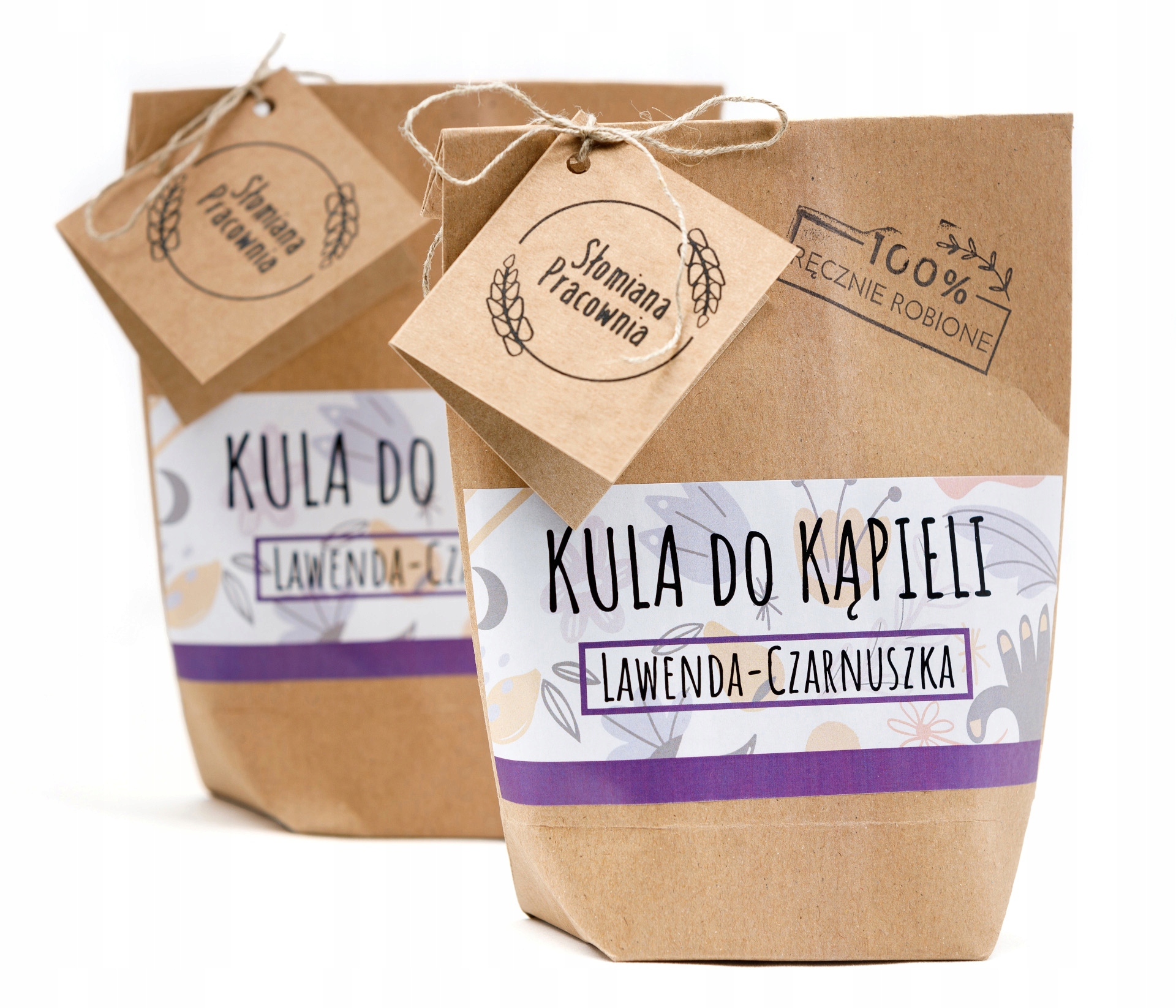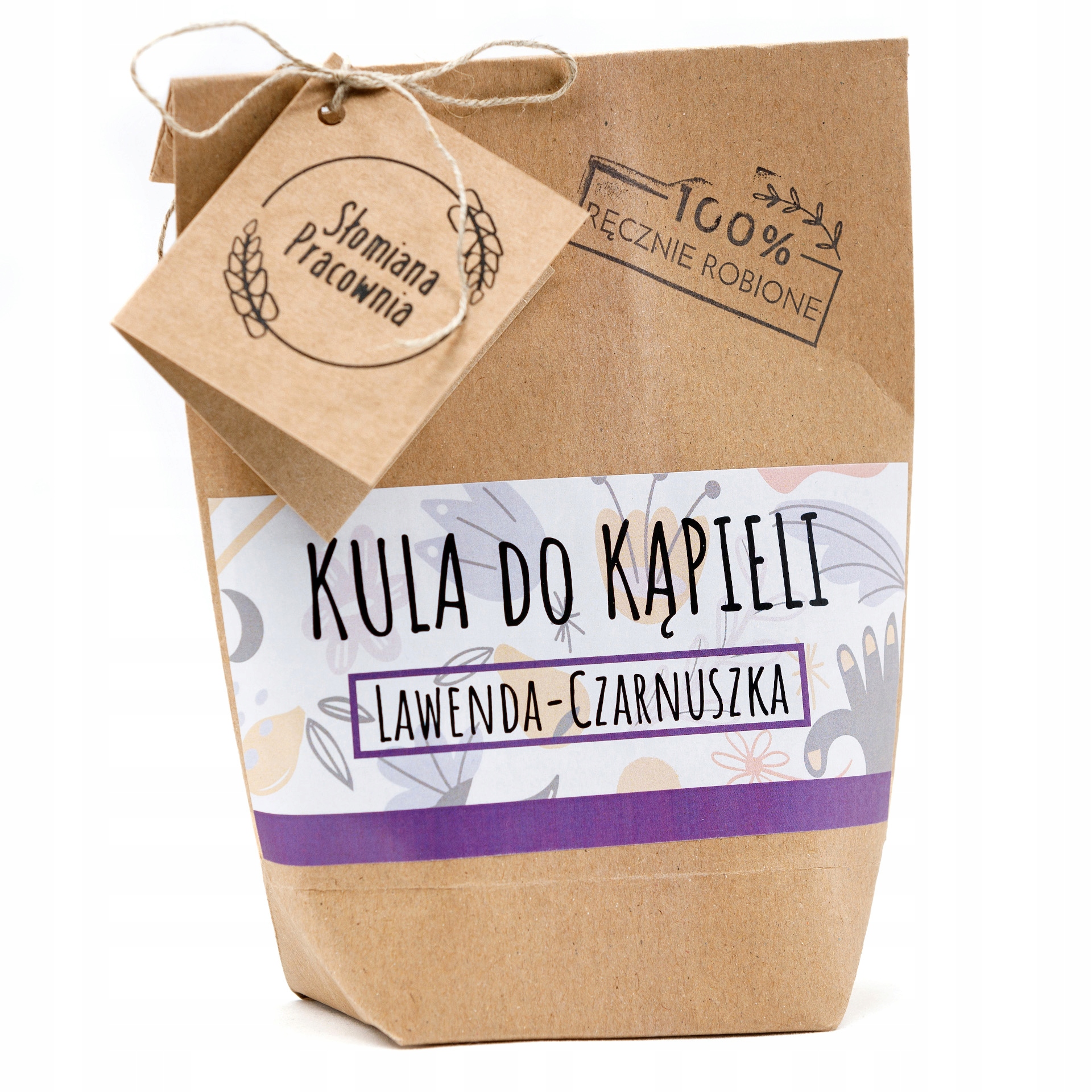 Kula do kąpieli Lawenda Czarnuszka Prezentujemy ręcznie robione, naturalne kule kąpielowe marki Słomiana Pracownia. Dzięki jednej niedużej kuli w każdej chwili możesz zafundować sobie domowe SPA. Do produkcji naszych kosmetyków używamy tylko naturalnych, starannie wyselekcjonowanych surowców… to dzięki nim, twoja skóra będzie doskonale nawilżona, a zapach unoszący się w kąpieli pomoże zostawić codzienność za drzwiami łazienki. Olejek lawendowy jest królem wśród olejków eterycznych. Jego wyjątkowe działanie lecznicze doceniał sam Hipokrates. Wpływa relaksująco na układ nerwowy, łagodzi ból, działa korzystnie na jakość snu. Czarnuszka natomiast nazywana jest „złotem faraonów”. Istnieje stwierdzenie, że „czarnuszka leczy wszystko prócz śmierci”. Połączenie idealne… ukoi zarówno ciało jak i umysł. Waga: 70g – 1 sztuka Skład: Soda oczyszczona, Kwasek cytrynowy, Sól kamienna, Olej kokosowy, Masło shea, Olej z czarnuszki, Naturalny olejek eteryczny lawendowy, Kwiat lawendy, Naturalny olejek eteryczny z olibanum