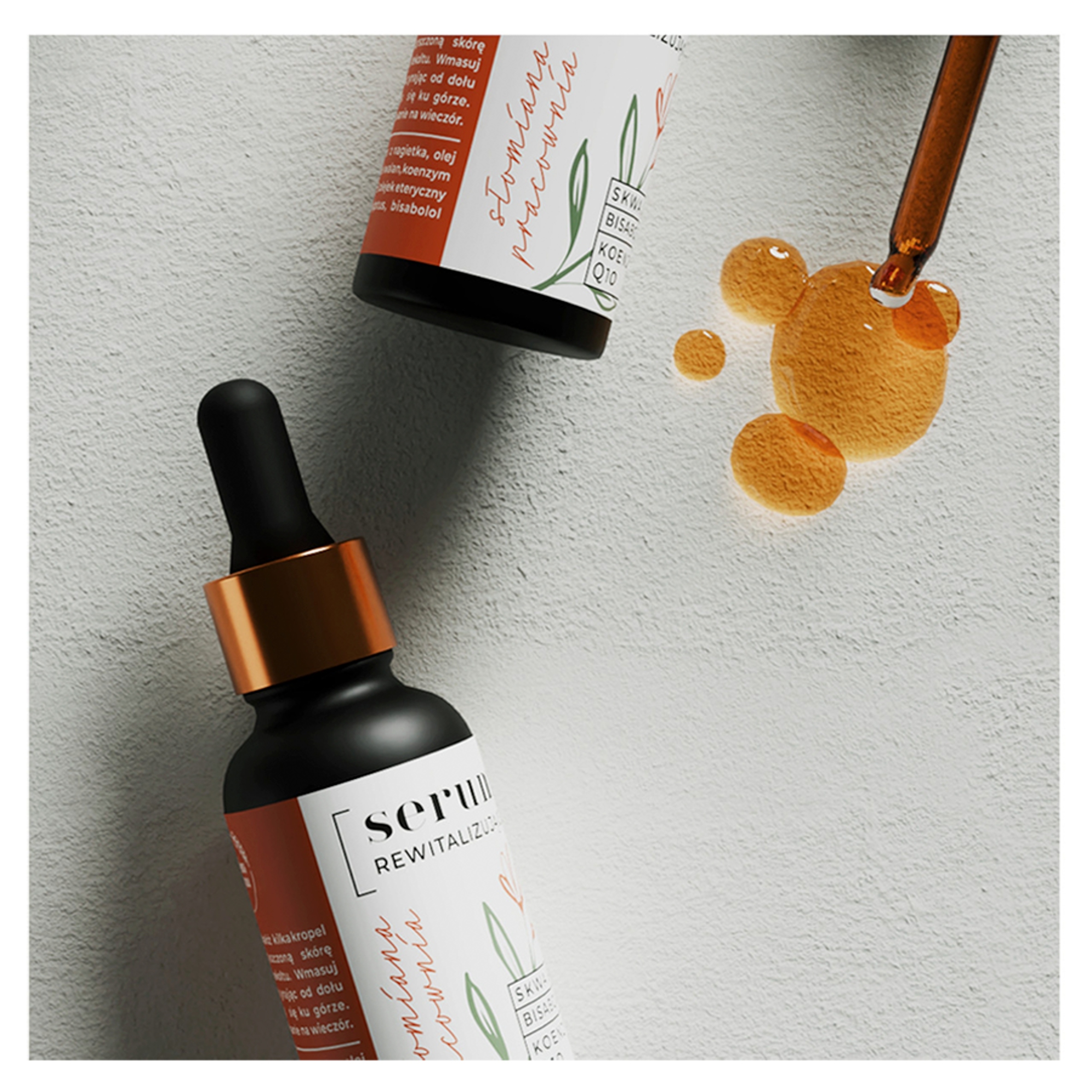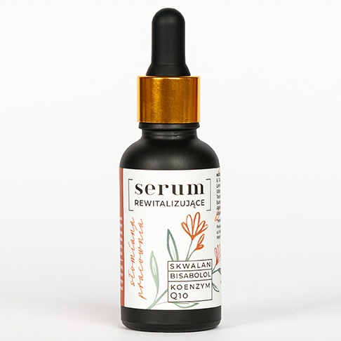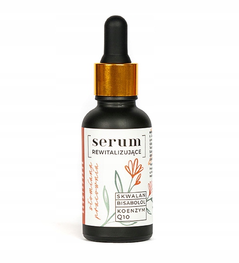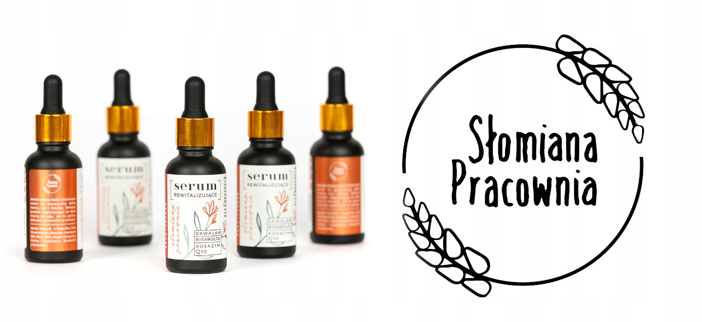 Słomiana Pracownia SERUM REWITALIZUJĄCE Tym razem jest to Serum Rewitalizujące do twarzy. Bogactwo użytych w nim surowców, od bazy po składniki aktywne zapewni Twojej skórze efekt „WOW” już po pierwszym użyciu. Czego możesz się spodziewać: – efektu wygładzenia i zmiękczenia cery już po pierwszym zastosowaniu – spłycenia widocznych oznak starzenia się skóry – rozświetlenia zmęczonej, poszarzałej cery – ochrony przed wolnymi rodnikami i czynnikami zewnętrznymi – przyjemności płynącej z codziennego rytuału pielęgnacji twarzy Pojemność: 30 ml – 1 sztuka Ingredients (INCI): Olea Europaea Fruit Oil & Calendula Officinalis Flower Extract, Limnanthes Alba Seed Oil, Squalane, Ubiquinone, Ascorbyl Tetraisopalmitate, Tocopherol, Melissa Officinalis Leaf Oil, Eucalyptus Globulus Leaf Oil, Bisabolol, Alpha-Pinen*, Citral*, Citronellol*, Geraniol*, Linalool*, Limonene* *naturalnie występujące w olejkach eterycznych