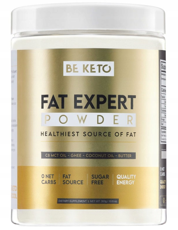 Fat Expert to innowacyjny produkt w proszku, który łączy w sobie różne źródła nasyconych kwasów tłuszczowych. Dedykowany jest zarówno osobom na diecie ketogenicznej, jak i wszystkim tym, którym zależy na odżywieniu organizmu zdrowymi tłuszczami. Zawiera m.in. średniołańcuchowy kwas tłuszczowy C8 (kwas kaprylowy), organiczne masło od krów karmionych trawą, olej kokosowy i masło klarowane. To najbardziej zaawansowany produkt na rynku, który dostarcza najzdrowszą mieszankę tłuszczów. Co ważne, można go stosować z innymi produktami BeKeto™, takimi jak: oleje MCT Keto Kolagen czy Keto Izolat Białka.