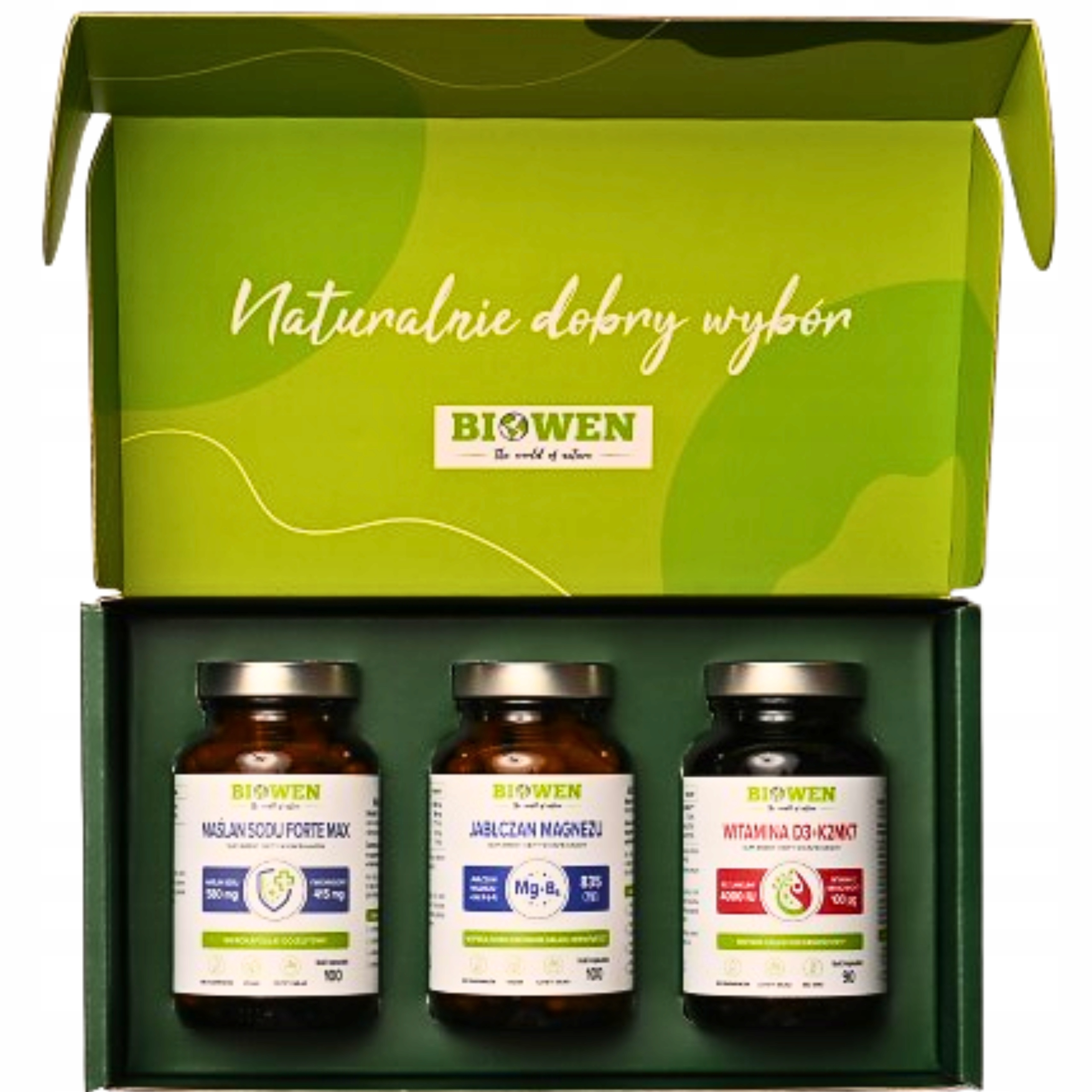 Zestaw na odporność: wspiera jelita wspiera odporność zawiera pełnowymiarowe produkty eleganckie opakowanie Podaruj zdrowie w pięknej formie! Zestaw „Na Odporność” marki Biowen to idealny prezent dla bliskich, którzy cenią świadomą troskę o swoje zdrowie. Ozdobne pudełko kryje trzy doskonale dobrane produkty, wspierające organizm na wielu poziomach, od odporności i zdrowia jelit, po prawidłowe funkcjonowanie układu nerwowego i mięśniowego. Dla kogo? Zestaw „Na Odporność” to doskonały wybór na prezent dla: Osób dbających o zdrowie – idealny dla tych, którzy preferują naturalne i skuteczne rozwiązania. Seniorów i rodziców – wsparcie układu odpornościowego, kości i jelit w jednym zestawie. Osób żyjących w stresie – produkty pomagają złagodzić zmęczenie i napięcie. Pracujących w wymagających warunkach – wzmocnienie odporności w trudnych okresach roku.